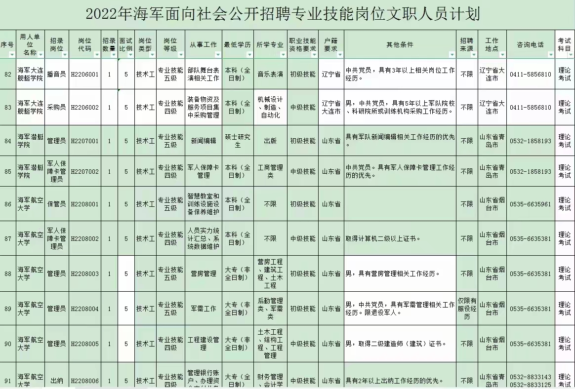 軍隊文職海軍公告已出,符合條件可聯系我!