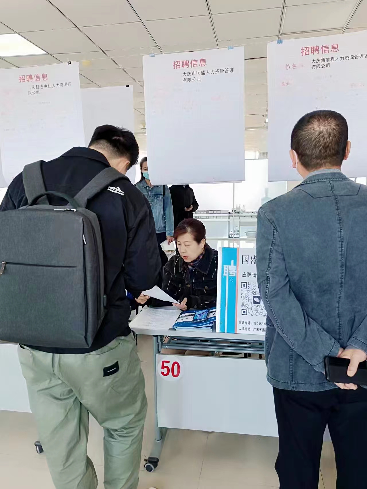僅大慶國盛人力資源有限公司就接受80余名求職者簡歷,提供近100余人的咨詢服務,發放企業宣傳手冊120份。