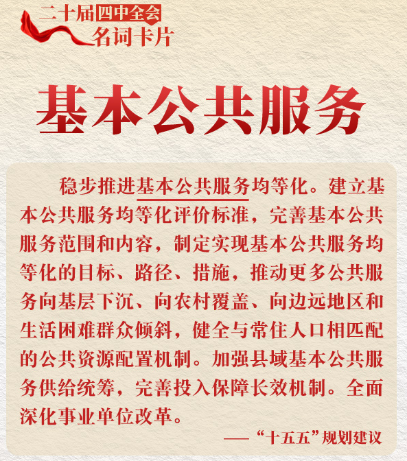 ??四是加大基本公共服務(wù)保障力度。強(qiáng)化基本公共服務(wù)中央事權(quán)和支出責(zé)任,合理提高基本公共服務(wù)支出占財政支出比重,構(gòu)建多元供給格局,完善基本公共服務(wù)均等化投入保障長效機(jī)制。(據(jù)《黨的二十屆四中全會<建議>學(xué)習(xí)輔導(dǎo)百問》)